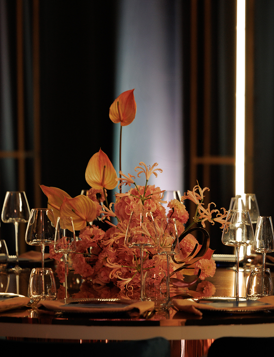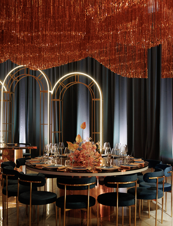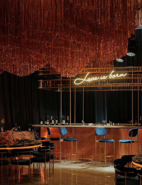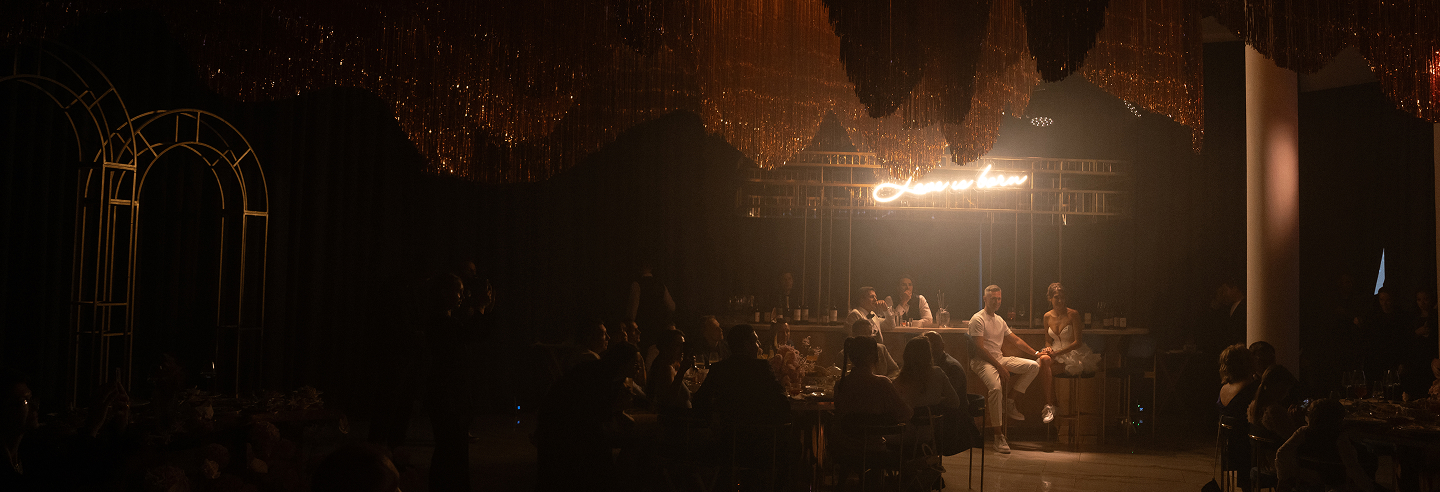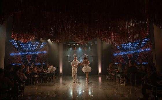 Далее действие перенесло гостей в другое измерение. Мы преобразили классическую итальянскую виллу до неузнаваемости, превратив её в настоящий ночной клуб. Яркие световые эффекты, барная стойка как главный арт-объект. Атмосфера переносила гостей в декорации того самого места, где однажды встретились Сергей и Дарья. Мы воссоздали энергетику и ритм их первой встречи, погрузив гостей в ту знаковую ночь, с которой началась их история любви с первого взгляда.